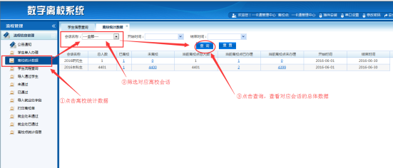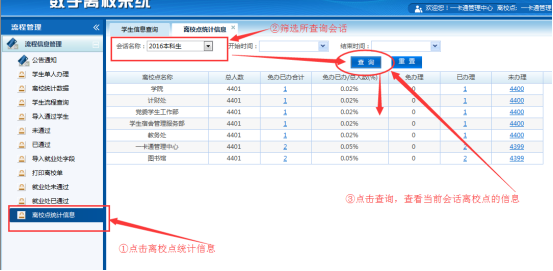 1.登录系统:各单位通过指定账号和密码登录离校系统。