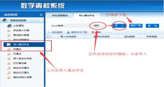 3.各单位须在每日下午18︰30(北京时间)前,使用离校系统的“导入通过学生”功能,实现批量审核“通过”。